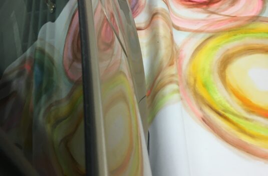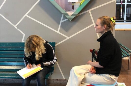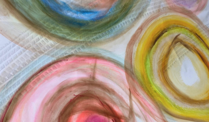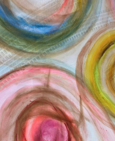 Vi börjar workshopen genom att lämna måsten och krav utanför dörren och gör enkla dansövningar tillsammans. Vi dansar till exempel i spiraler för att komma in i en lekfull känsla och plats där konst kan få rum.