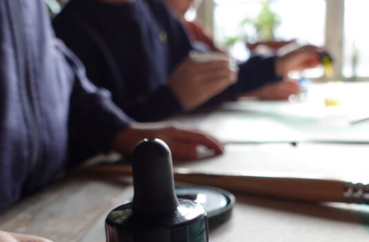 Innan tillfället äger rum diskuterar vi vilken teknik som känns intressantast för eleverna, beroende på deras ålder, schema och materialbudget. Det finns många spännande material som vi kan välja mellan; tusch, gouache, akrylfärg, papper, foamboard, temperablock och återbrukat material.
