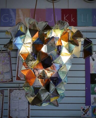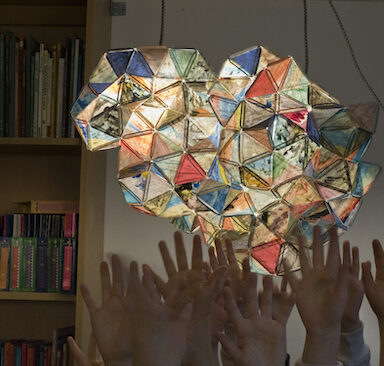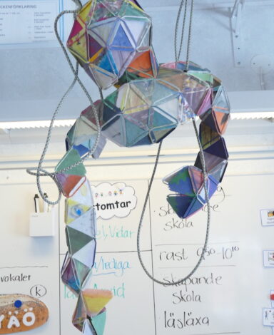 Projektet har ett tydligt ramverk som skräddarsys efter skolans förutsättningar och som resulterar i en vacker lampskulptur som hängs upp på en plats vi bestämmer gemensamt. Där får den gärna hänga permanent, som minne av det som skapats tillsammans, och som utsmyckning av skolans lokaler.